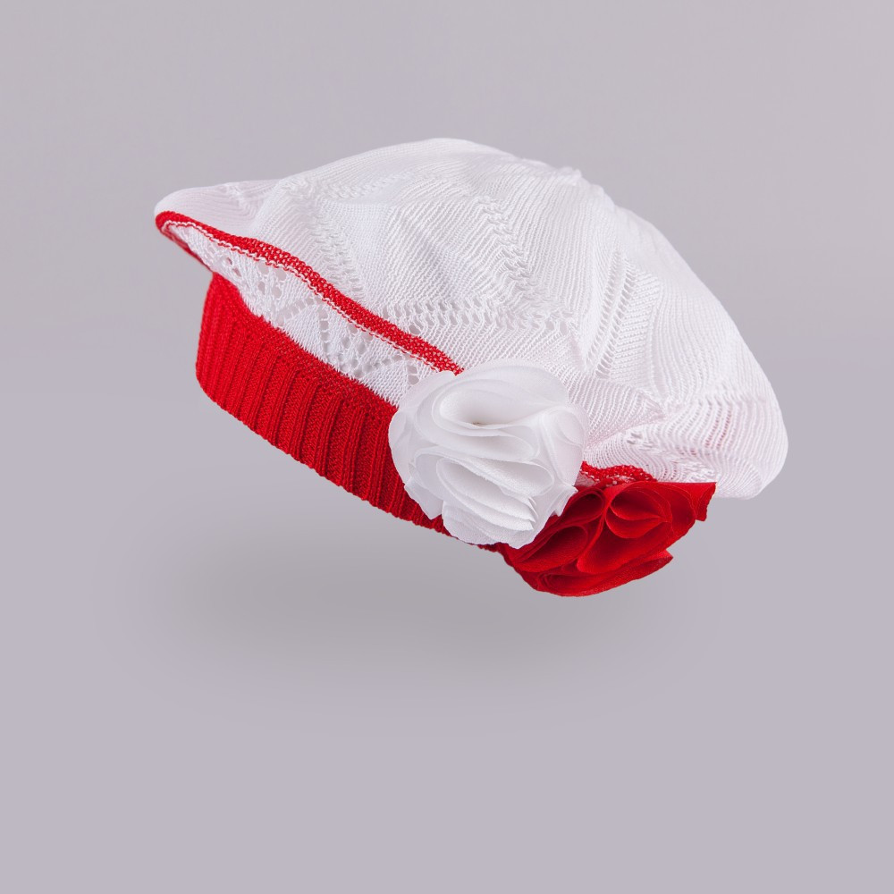 Бере для дівчинки, тонкої ажурною в'язки з прикрасою з квітів.